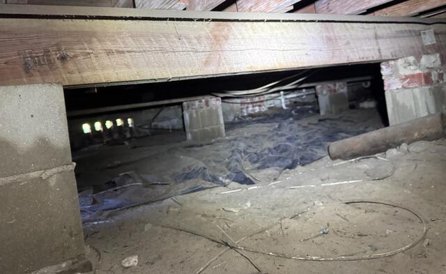 This Jacksonville, FL home was dealing with a crawl space filled with moisture, debris, exposed wiring, and failing insulation conditions that can lead to mold growth, poor air quality, and structural damage. The before photo shows the original state of the crawl space, with torn plastic, open dirt, and no proper moisture barrier in place.