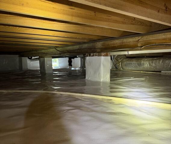 Our team completed a full crawl space encapsulation, sealing the entire area with a clean, durable vapor barrier and insulating the walls for long-term protection. The after photo highlights the dramatic transformation: a bright, dry, sealed environment that prevents humidity, protects wooden structures, and supports healthier air throughout the home.