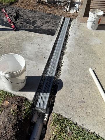 Before repairs, water was collecting along the exterior walkway and near the foundation. Poor drainage allowed rainwater to sit against the concrete, increasing the risk of moisture intrusion, erosion, and long-term foundation issues especially in a coastal environment. After installing exterior waterproofing and a new drainage solution, water is now directed safely away from the home. This improvement helps protect the foundation, reduce standing water, and give the homeowner long-term peace of mind during heavy rains.