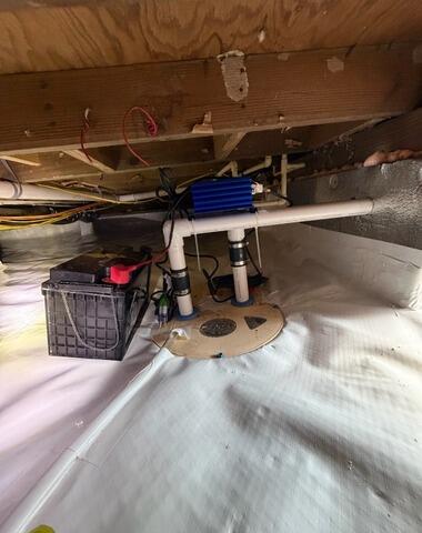Water pooled in this homeowner's crawl space after heavy rains. Following a thorough assessment of the space, our team recommended installing our perimeter french drain system along with a TripleSafe sump pump and SmartSump pump. The french drain was connected to our sump pumps, which are designed to work in tandem to prevent flooding.