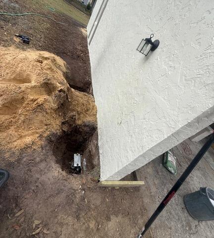 This St. Augustine home was experiencing signs of foundation settlement, including soil shifting around the exterior, potential structural movement, and areas of concern near the foundation footing. Coastal soil conditions and moisture fluctuations can often lead to unstable support beneath the home, causing sections of the structure to sink or shift over time.